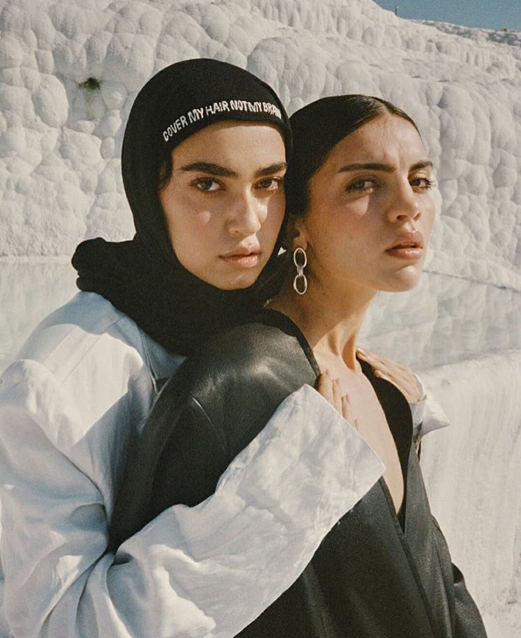 Broderie - Pièce unique, texte brodé à l'aiguille sur voile pour la marque modest Kenza B.